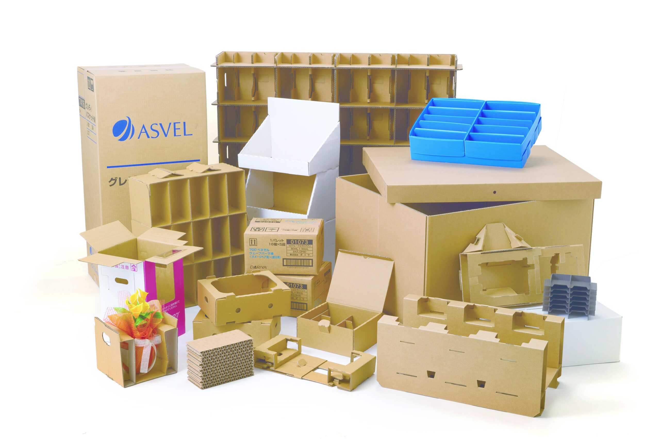 段ボール・段ボール箱の製造、販売、 プラスチック段ボール箱の販売、 美粧段ボール・化粧箱の販売、 梱包資材の販売